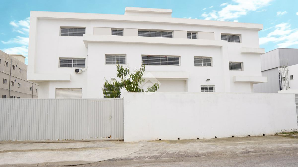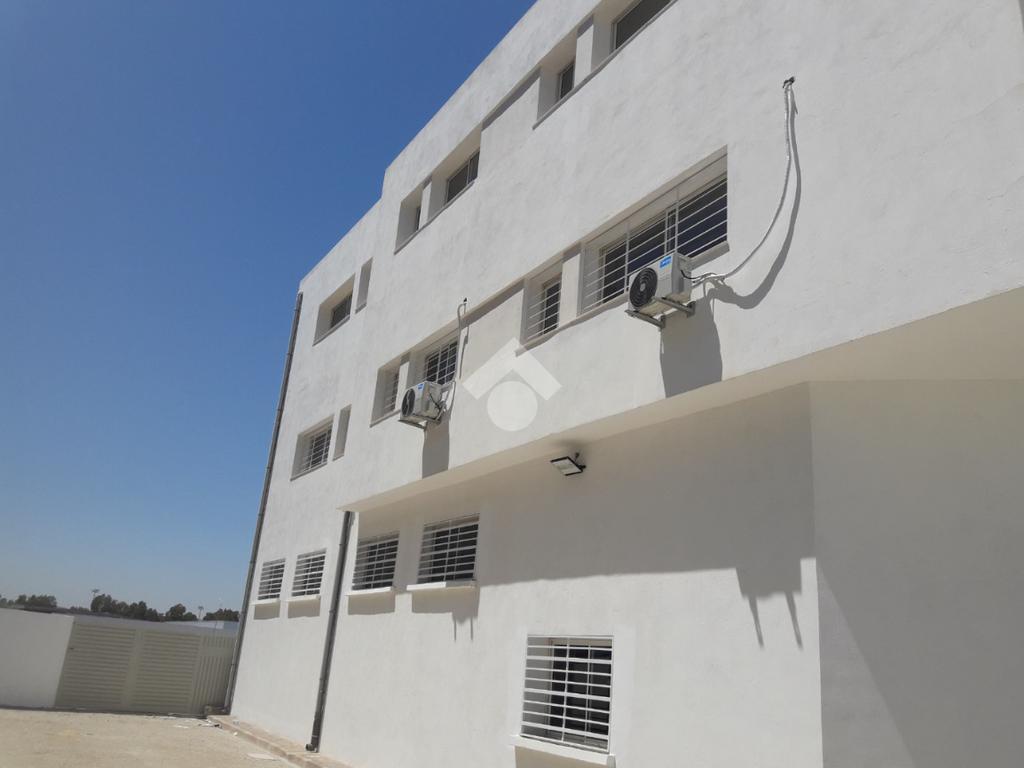 Implanté à El Mghira, cet actif à vocation industrielle et logistique offre une surface bâtie de 1 700 m², répartie sur trois niveaux, sur un terrain de 3 500 m², permettant une exploitation optimale du site.